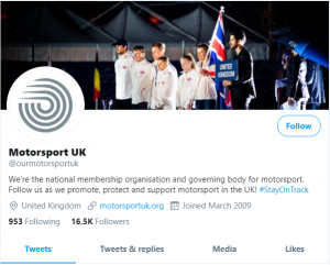 Follow Motorsport UK on Twitter by searching for @ourmotorsportuk within the site.