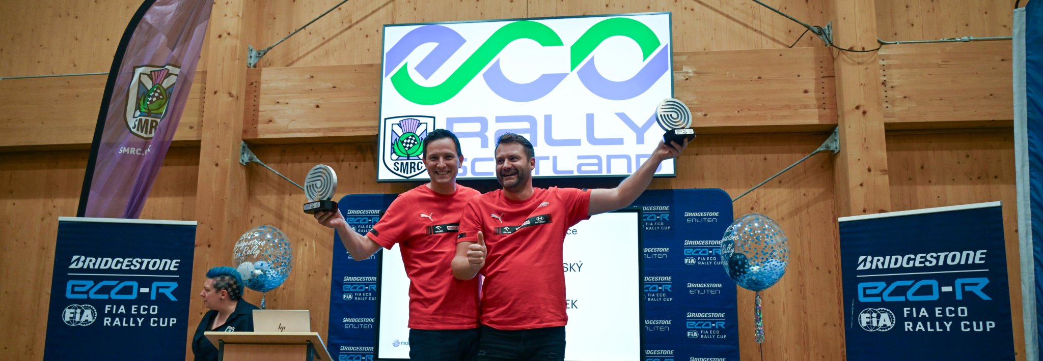 Bridgestone FIA ecoRally Cup Champions, Michal Žďárský and Jakub Nábělek, (Czech Republic) claim the ecoRally Scotland title, for round eight of the FIA Bridgestone ecoRally cup.