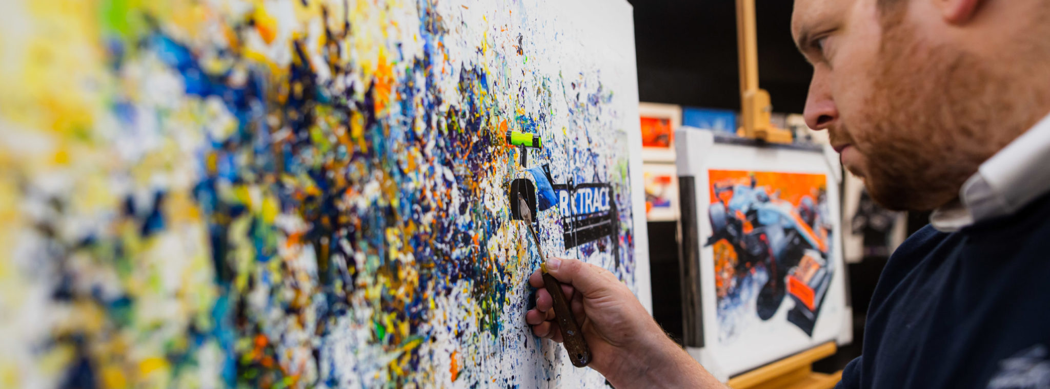 What do a radio control car, a pallet knife, an iPad, and a paint brush have in common? The answer is they are all items that have been used by some of the UK’s most intriguing and innovative motorsport artists to create their masterpieces of the track.