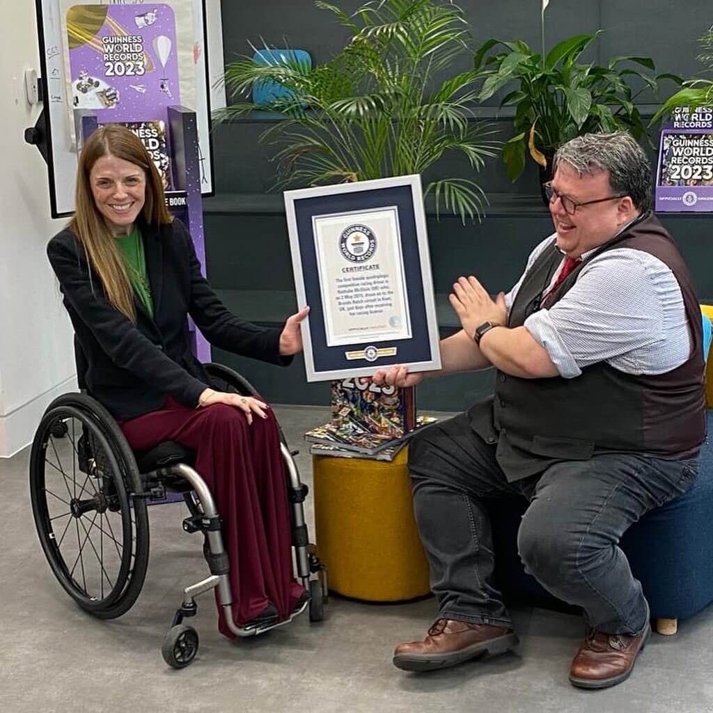 Presented with the record earlier this year, McGloin is the first female quadriplegic rally and circuit racing driver in the world and juggles roles as the President of the FIA Disability and Accessibility Commission and as a public speaker.